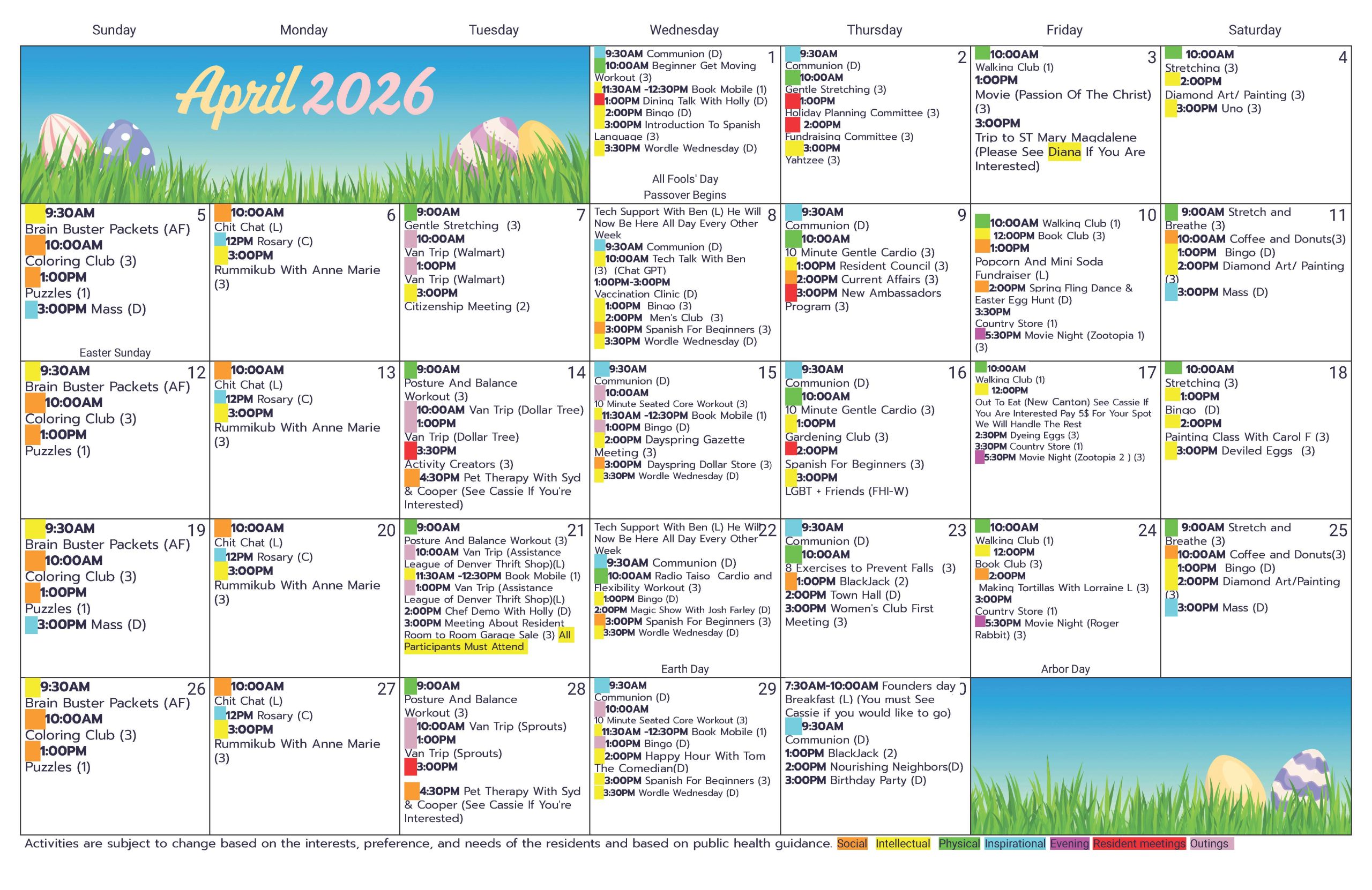 Home » Community Life » Signature Programs » Rhythms Life Enrichment » Life Enrichment Calendars